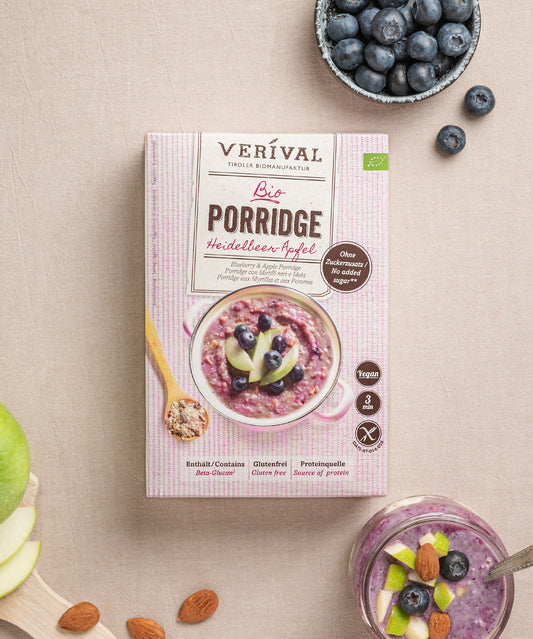 A healthy breakfast is the perfect start to your day! As a manufacturer of organic breakfast products, we at Verival have made it our goal to help you start every day with the right breakfast. We have a wide selection for you, because we don't want you to get bored at the breakfast table, which is why we supply our porridge, muesli and granola in numerous flavours. For the creative among you: Have you already browsed through the many flakes, cereals and toppings (chia seeds, berries, etc.) for a completely personalised breakfast experience? All our breakfast products are carefully produced in Tyrol - 100% organic quality and natural enjoyment. Discover your favourite breakfast products now.