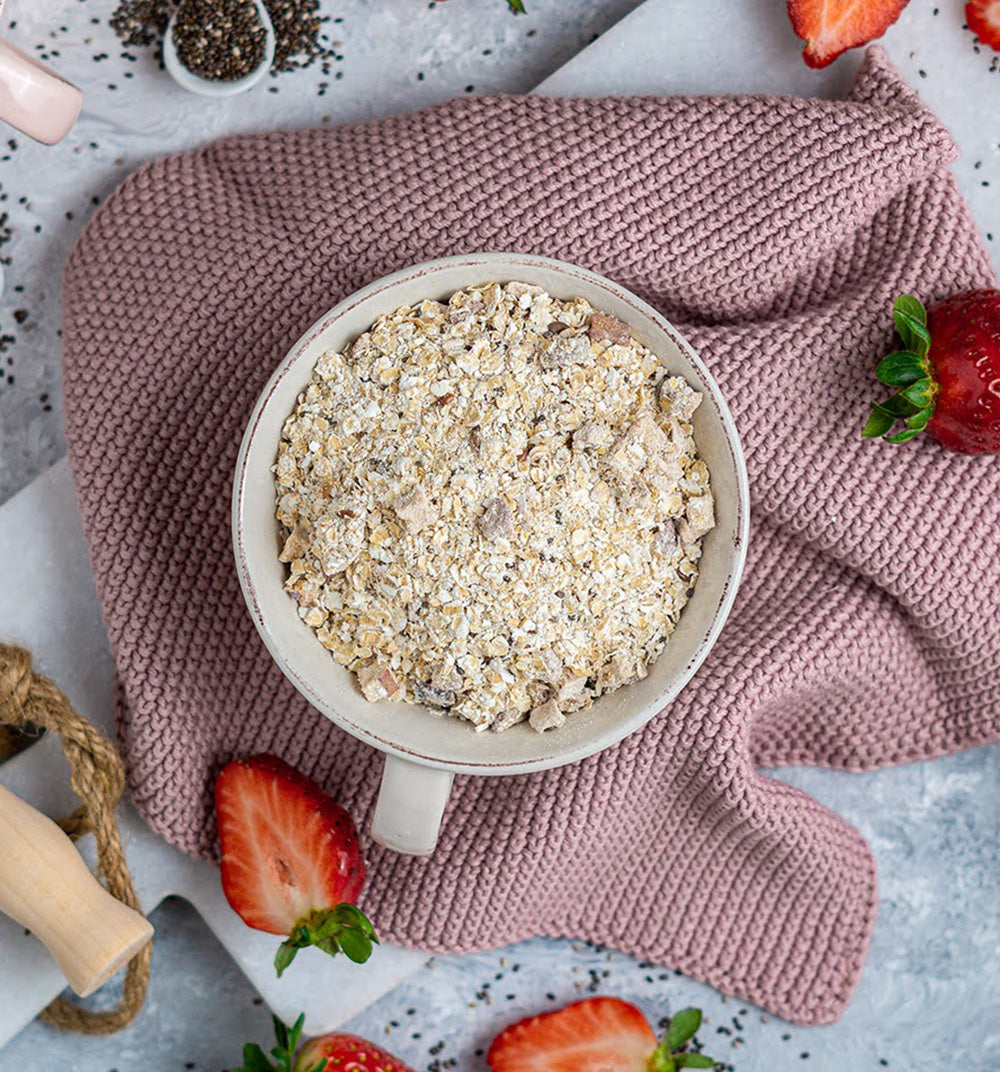 Our porridges with oat groats are particularly creamy thanks to the finely ground and rolled whole grain oats and can be prepared not only with hot milk or plant-based drinks, but also with cold milk in the form of overnight oats.